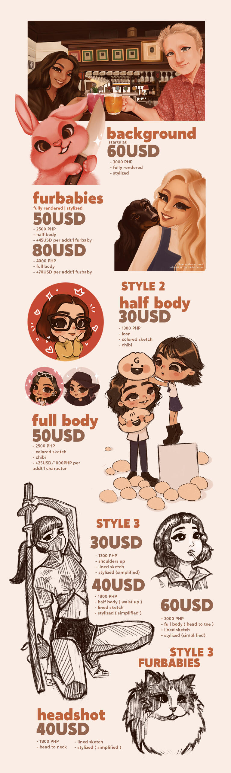 I only accept payments through PayPal, GCash, Kofi, and Bank Transfer (eastwest bank).